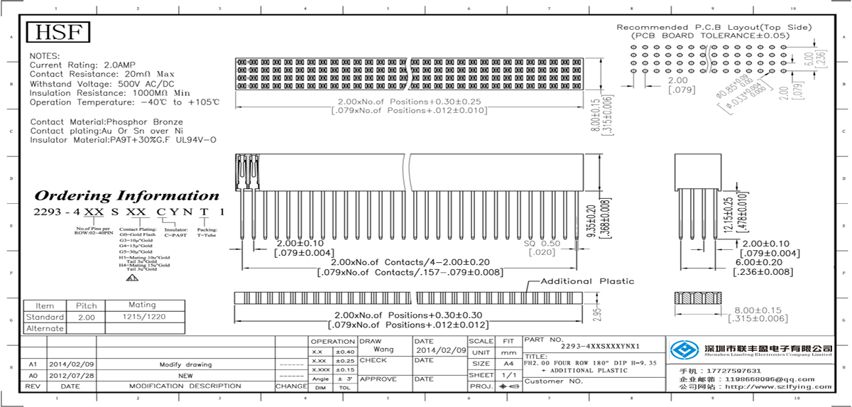 技術(shù)參數(shù):額定電流:2.0amp電流電阻:20mΩ最大絕緣電阻:1000mΩ承受電壓:AC 500V /分鐘工作溫度:40﹣℃+ 105℃接觸材料:磷青銅接觸電鍍:對(duì)鎳金絕緣體材料:聚酯(UL94V-0)標(biāo)準(zhǔn):PA6T或PBT黑色+ 30% GF