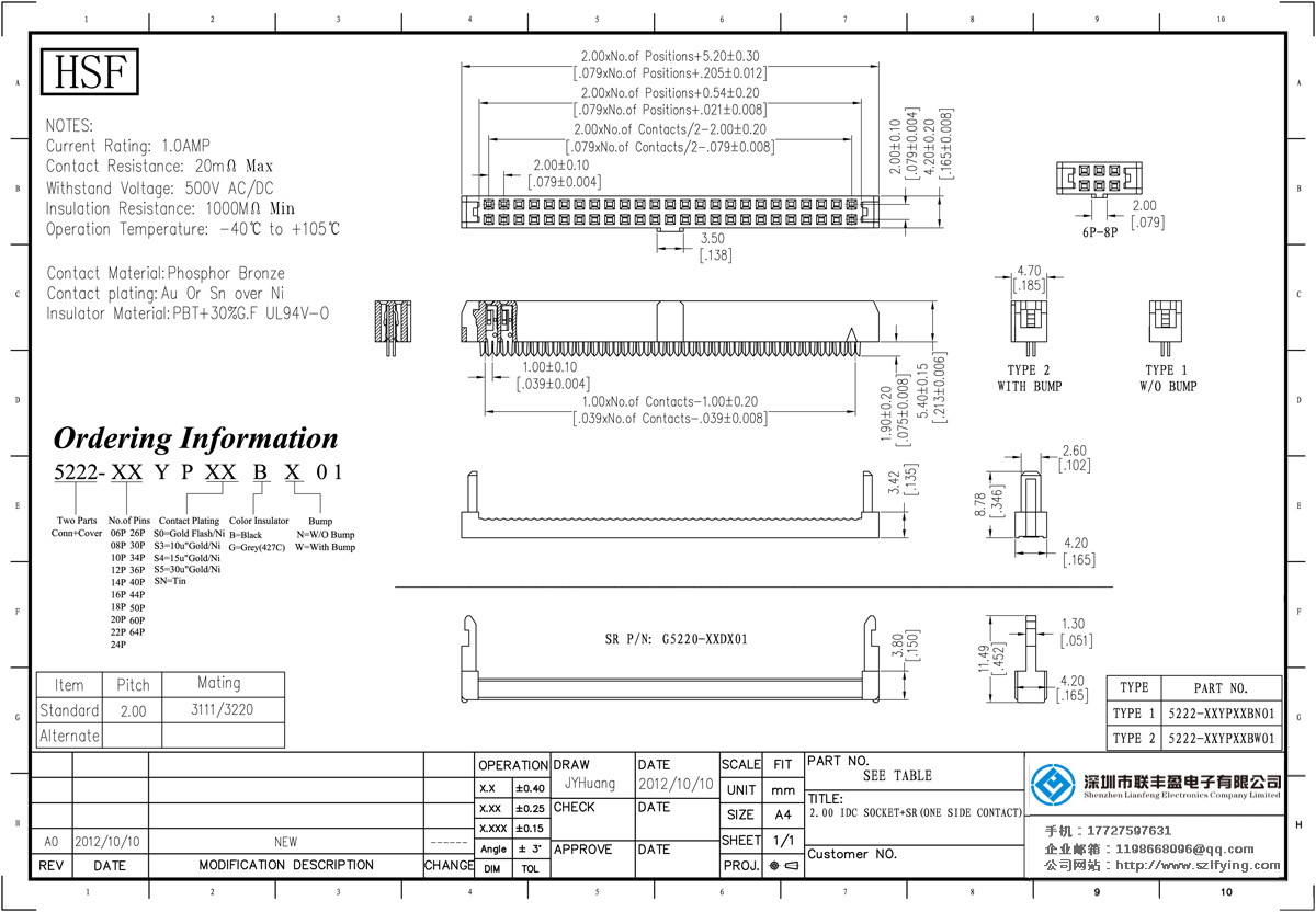 產品分類:IDC插座連接器 產品型號: 2.00 彈片型 磷銅 IDC 聯(lián)豐盈 技術參數:額定電流:1.0amp電流電阻:20m最大絕緣電阻:1000mmin耐壓:1000V AC /分鐘工作溫度:40﹣℃+ 105℃接觸材料:黃
