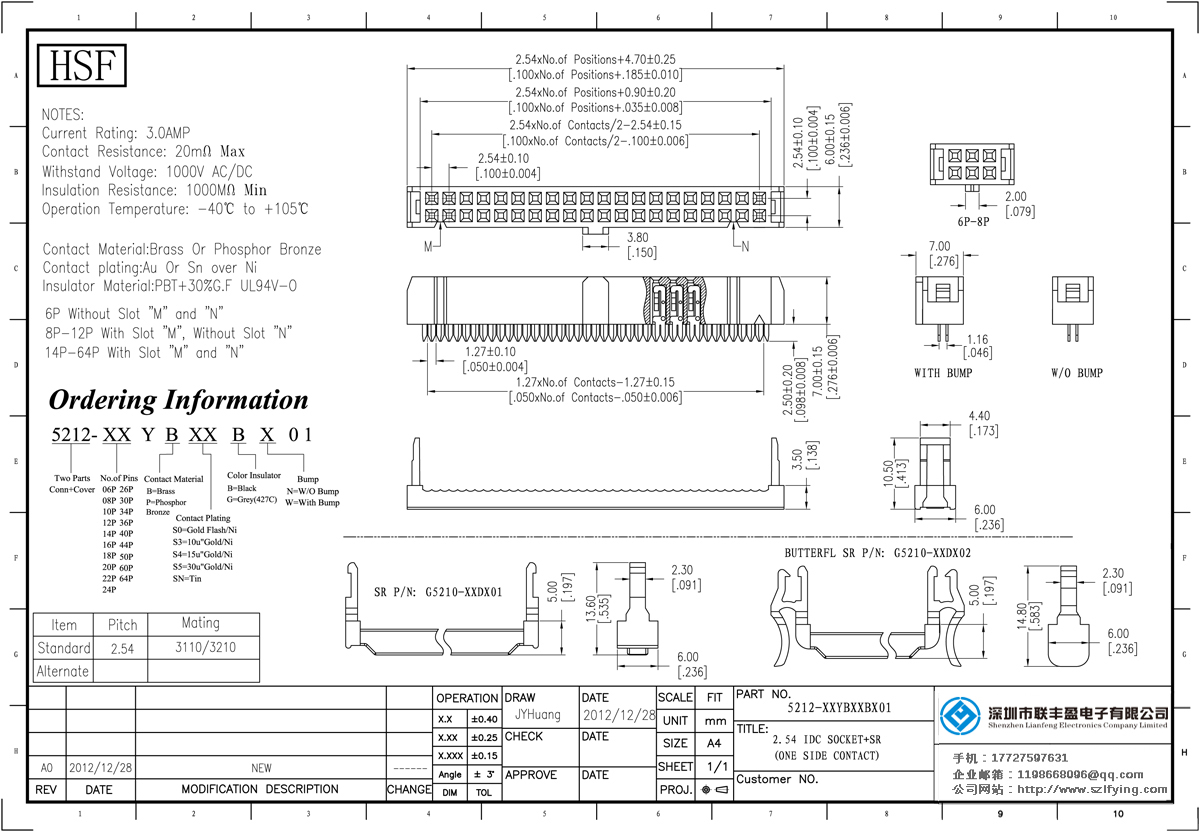 產品分類:IDC插座連接器 產品型號:2.54 彈片型三件套 IDC 聯豐盈 供應 技術參數:額定電流:3.0amp電流電阻:20m最大絕緣電阻:1000mmin耐壓:1000V AC /分鐘工作溫度:40﹣℃+ 105℃接觸材