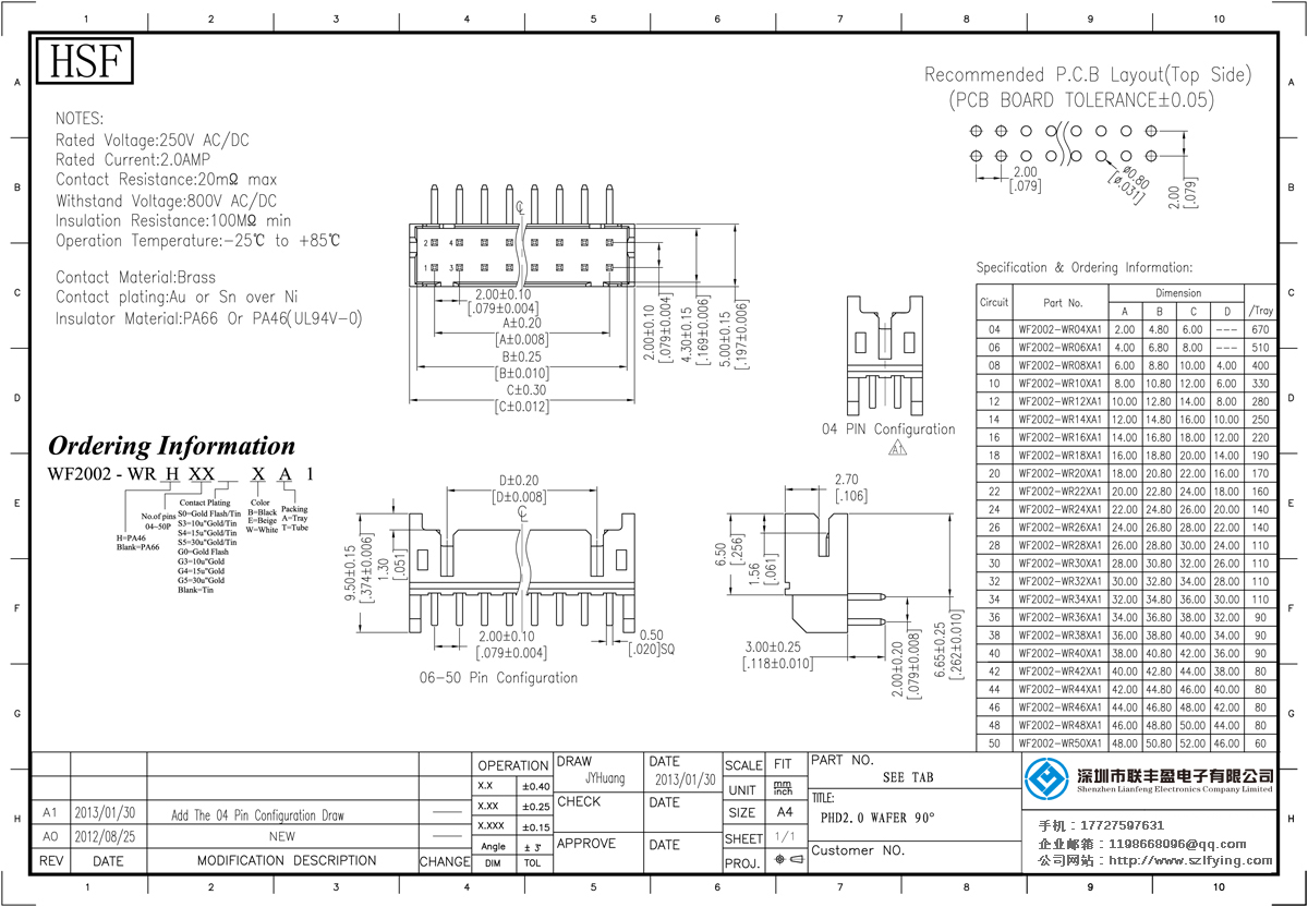 技術參數:電流1.0amp:接觸電阻:20mΩ最大絕緣電阻:1000mΩmin耐壓:800V的交流電源/分鐘operyion溫度:25℃+ 85℃接觸材料:黃銅觸點電鍍金或錫鎳絕緣體材質:聚酯(UL94V-0)標準:PA66、PA46
