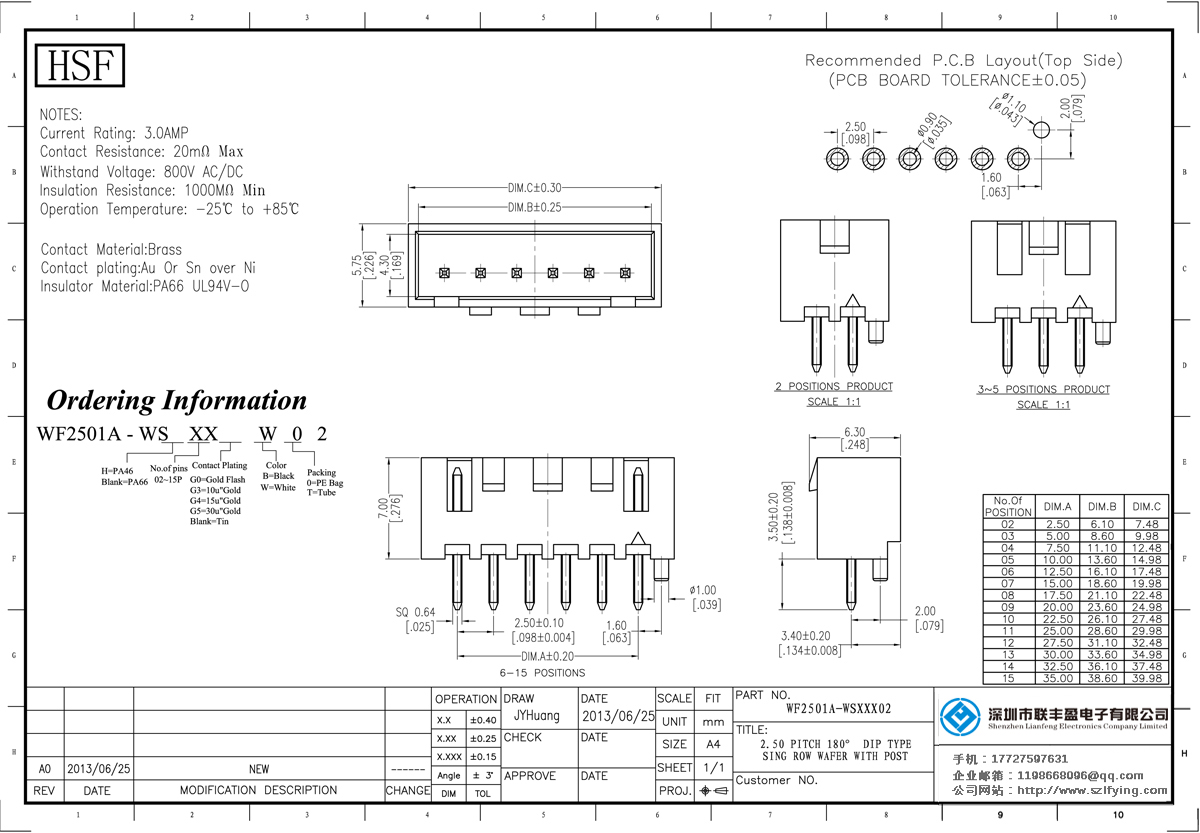 技術(shù)參數(shù):電流1.0amp:接觸電阻:20mΩ最大絕緣電阻:1000mΩmin耐壓:800V的交流電源/分鐘operyion溫度:25℃+ 85℃接觸材料:黃銅觸點電鍍金或錫鎳絕緣體材質(zhì):聚酯(UL94V-0)標(biāo)準:PA66、PA46