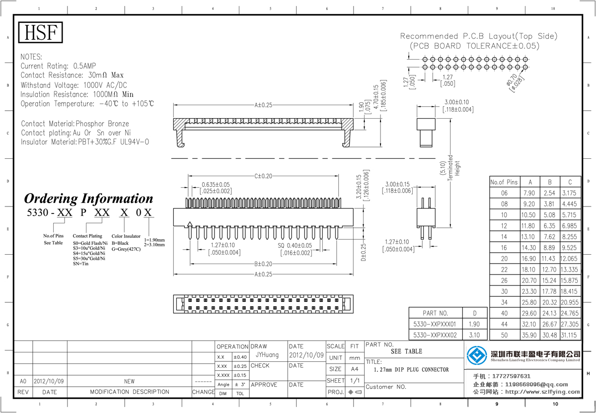 產品分類:DIP插頭連接器 產品型號:1.27MM 磷銅 DIP PLUG 聯豐盈 廠家 技術參數:額定電流:3.0amp電流電阻:30m最大絕緣電阻:1000mmin耐壓:500V的交流/直流操作溫度:40﹣℃+ 105℃接觸材料