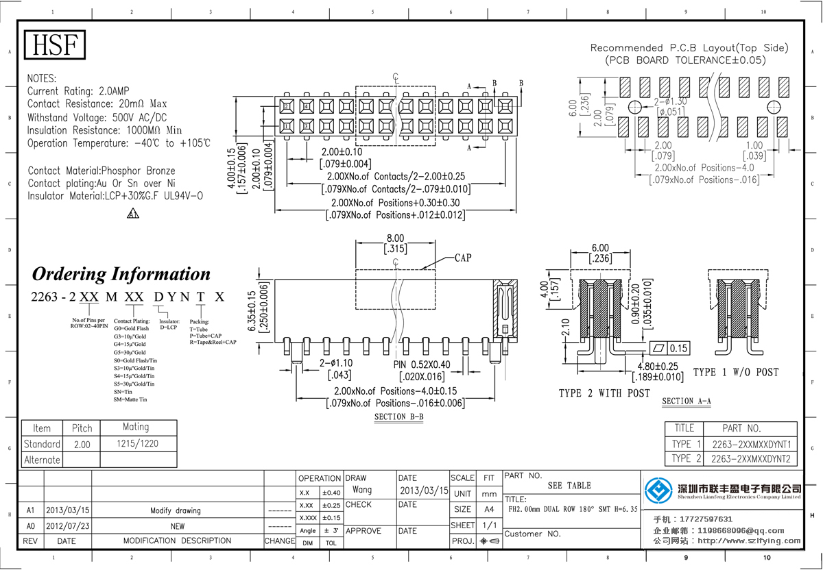 產品介紹:額定電流:2.0amp電流電阻:20mΩ最大絕緣電阻:1000mΩ民承受電壓:AC 500V /分鐘工作溫度:55﹣℃+ 125℃接觸材料:磷青銅接觸電鍍:對鎳金絕緣體材料:聚酯(UL94V-O)標準:LCP PA6T黑+ 30% GF HTPP/www.huifng-china.com
