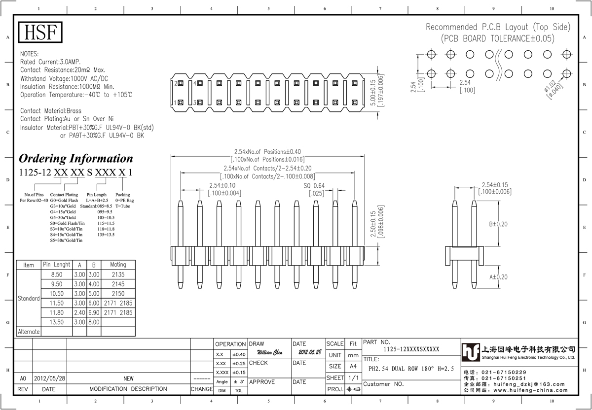 產品介紹:額定電流:3.0amp電流電阻:20mΩ最大絕緣電阻:1000mΩ民承受電壓:AC 500V /分鐘工作溫度:40﹣℃+ 105℃接觸材料:黃銅觸點電鍍金或錫鎳絕緣體材質:聚酯(UL94V-0)標準:PA9T或PBT黑色+ 30% GF