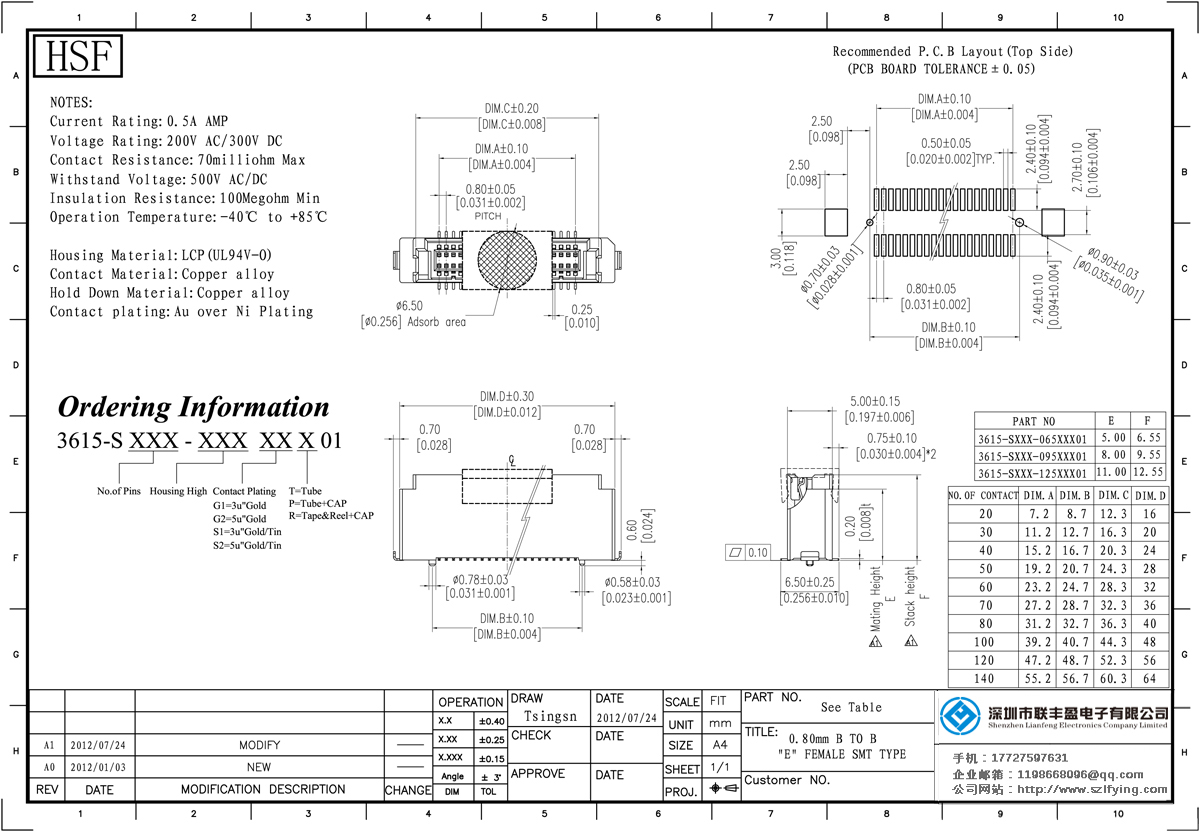 產品分類:Board To Board 連接器 產品型號:0.8MM 母座 卷裝 Board To Board 聯豐盈 技術參數:額定電流:0.5amp電流電阻:65m最大絕緣電阻:1000m承受電壓:交流250V /分鐘工作溫度:40﹣℃+ 10