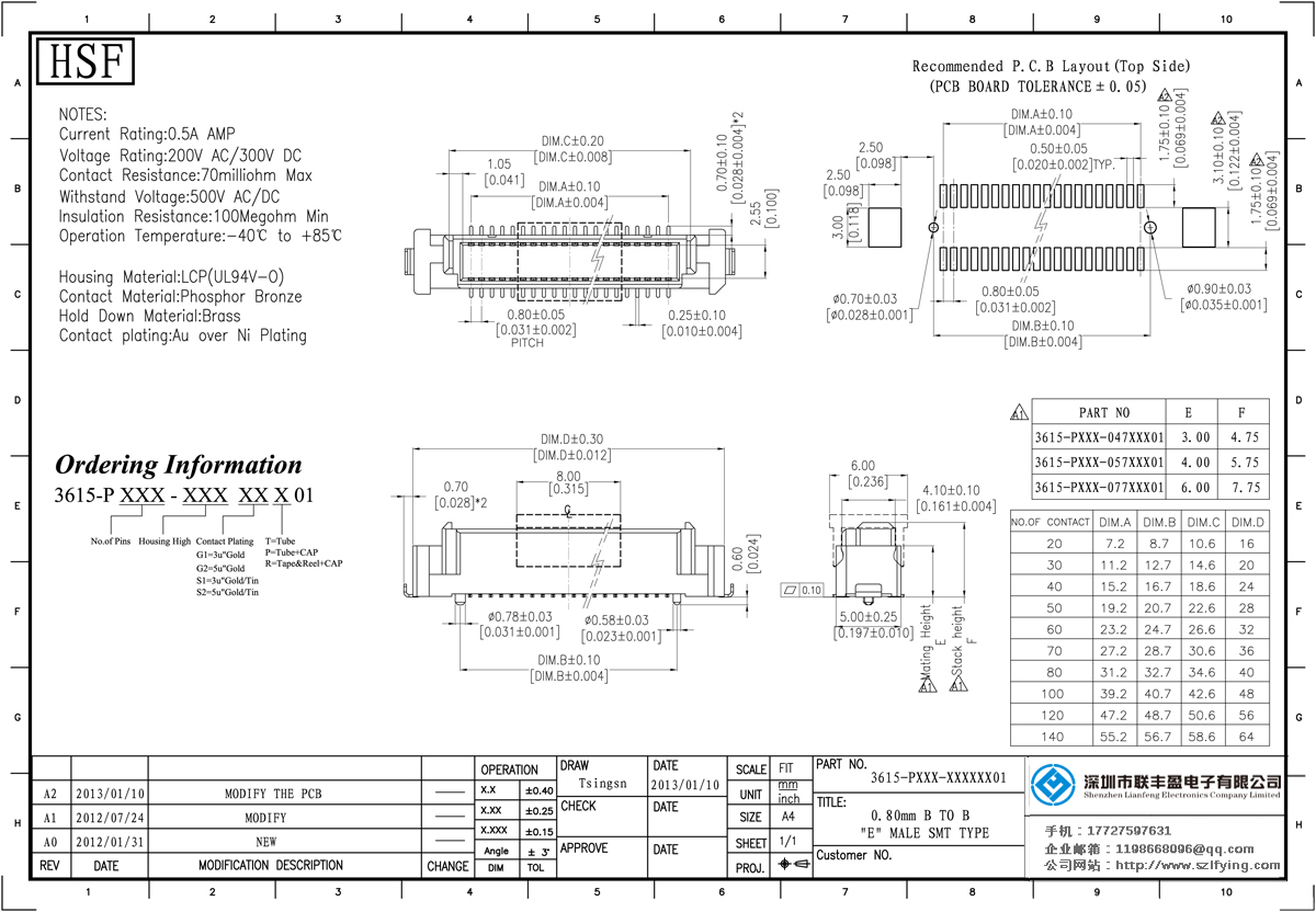 產品分類:Board To Board 連接器 產品型號:0.8MM 母座 單槽結構DDK型 Board To Board 聯豐盈 技術參數:額定電流:0.5amp電流電阻:65m最大絕緣電阻:1000m承受電壓:交流250V /分鐘工作溫度: