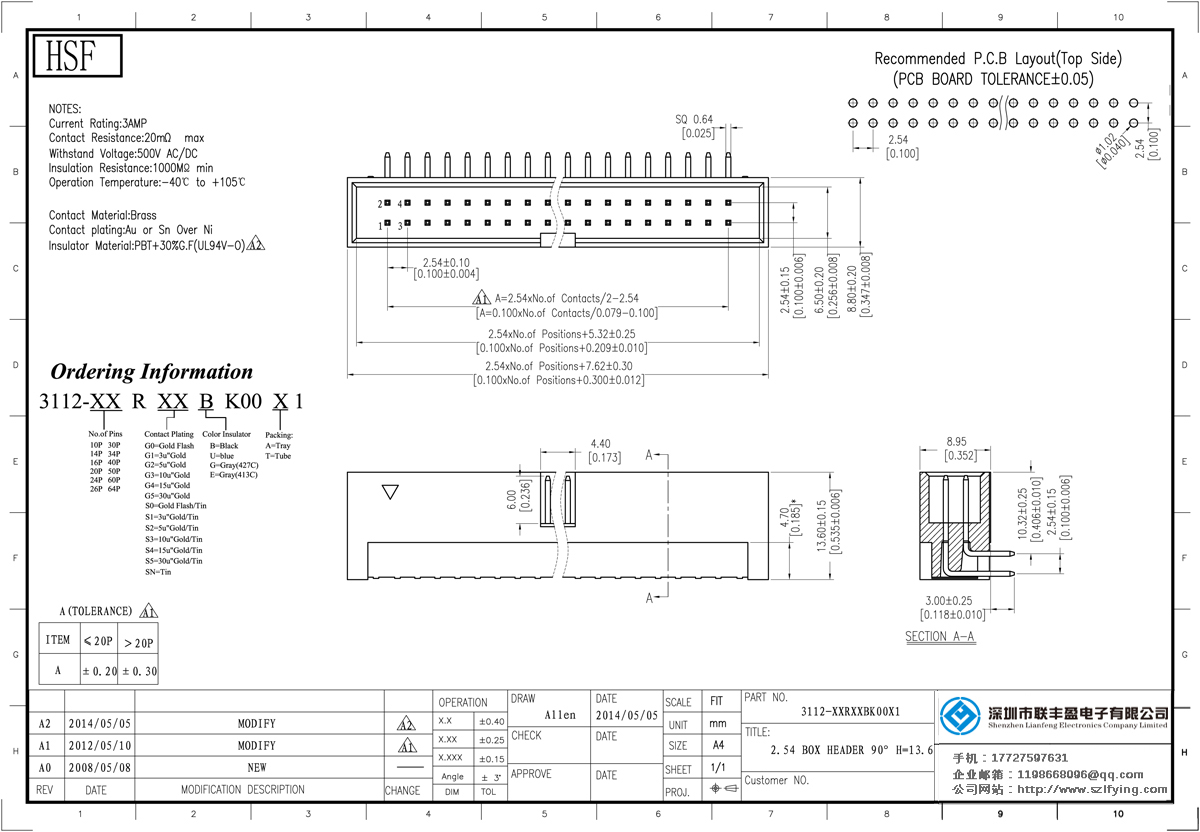 技術參數:額定電流:1.52amp電流電阻:20mΩ最大承受電壓:500V的交流/直流絕緣電阻:1000分鐘操作溫度:40﹣℃+ 105℃接觸材料:黃銅觸點電鍍金或錫鎳絕緣體材質:PBT的+ 30% g.f UL94V-O