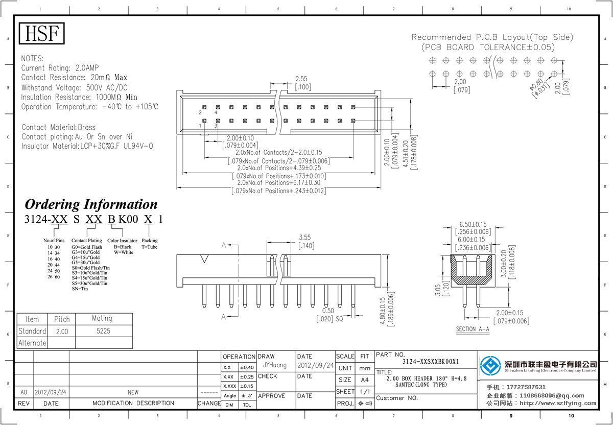 技術參數:額定電流:2.0amp電流電阻:20mΩ最大承受電壓:500V的交流/直流絕緣電阻:1000分鐘操作溫度:40﹣℃+ 105℃接觸材料:銅觸點電鍍金或錫鎳絕緣體材質:PBT的+ 30% g.f UL94V-O蓋ul-94v-o LCP;